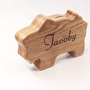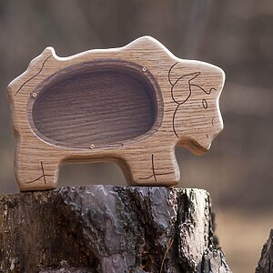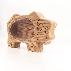 Bizon wooden piggy banks for kids crafted from a piece of oak wood! It has organic glass cover. The glass is clear, so you can see the growth of savings. It is also heavy and stable to stand on its own.