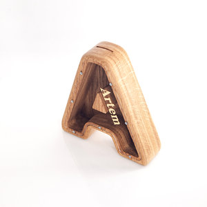 Dinosaur letter piggy bank (wooden money box) will be a wonderful gift for a girl and for a boy!