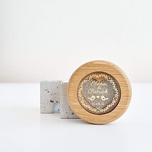 We make all the boxes for rings from eco-friendly oak. Carefully sanded to get a wonderful result. We cover it with wax or oil, depending on the color, for long-term protection. This is handmade. For a stronger fixation of the lid, I use neodymium magnets.