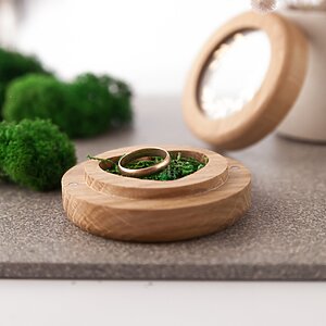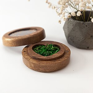 The ring box will be a wonderful addition to your wedding ceremony! I do boxes for rings manually. I use neodymium magnets to securely attach the lid. Waxing gives a pleasant surface.