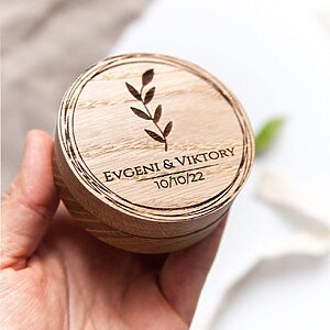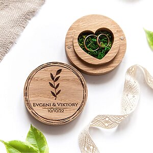 Our wooden double ring box can be personalized, please leave a note at checkout with the required name or text and select Personalize – “Yes”. If you did not select a font and design, then engraving is printed as on the sample.