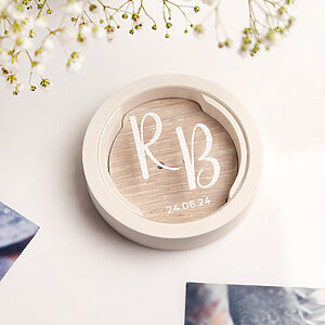 Wedding gypsum ring bearer pillow round with oak insert