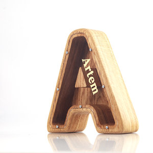 Dinosaur letter piggy bank (wooden money box) will be a wonderful gift for a girl and for a boy!